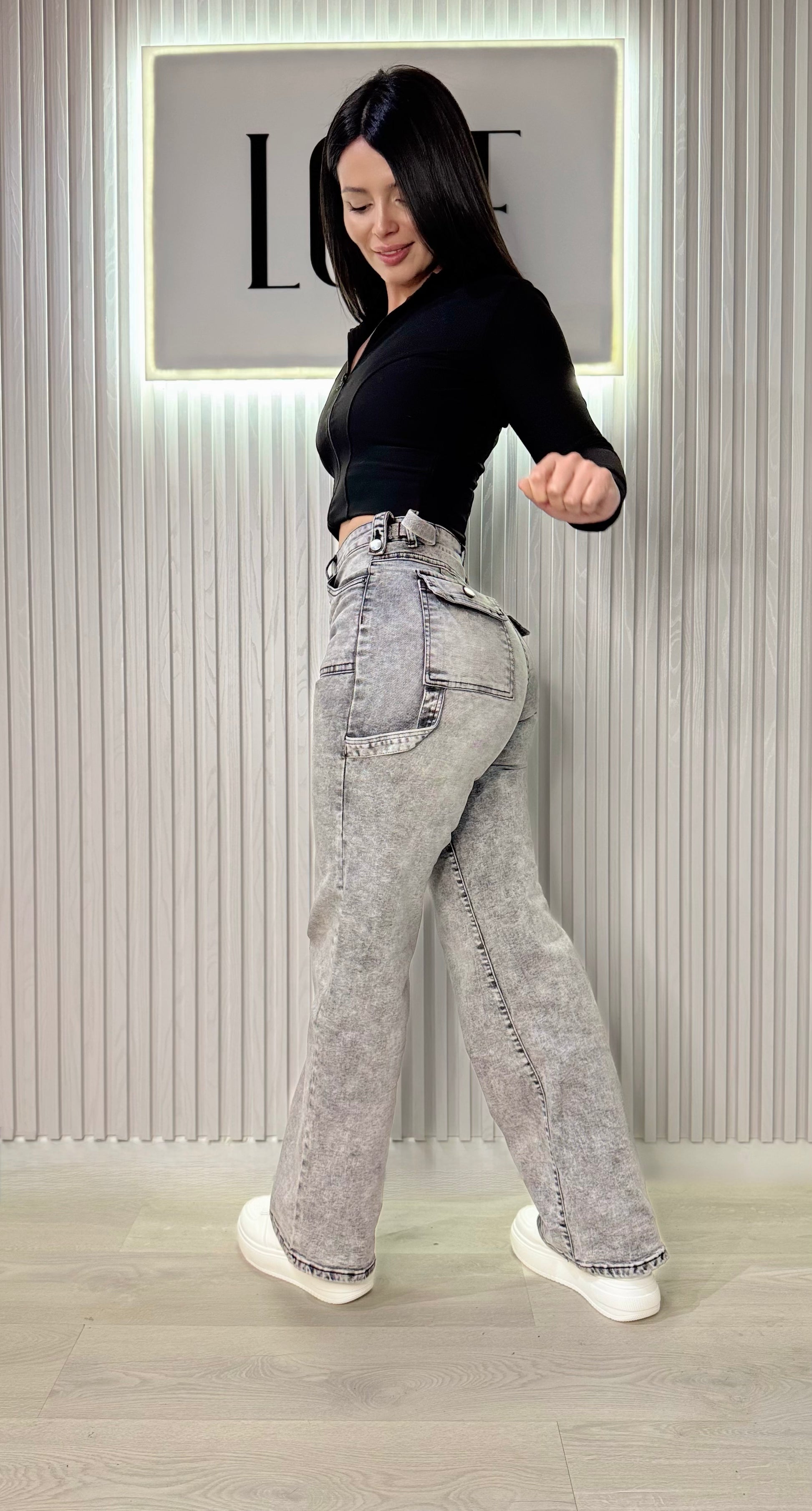 Nuestro Jeans Cargo ajustable Gris combina comodidad y estilo en una sola prenda. Su corte recto con caída amplia estiliza tu silueta y se adapta a cualquier ocasión. Perfecto para acompañar con zapatillas, es el básico que no puede faltar en tu clóset.