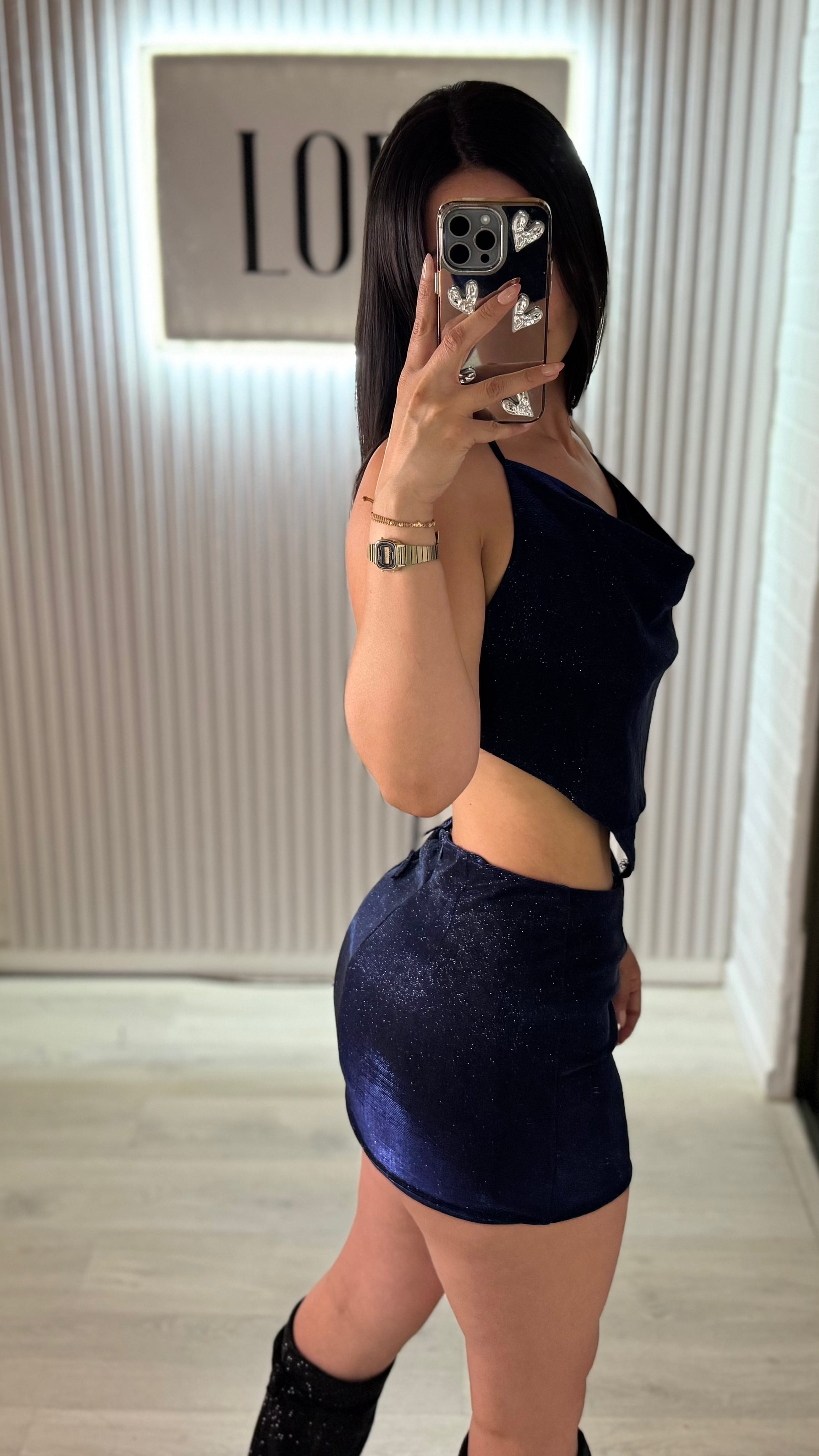 El match perfecto entre comodidad y actitud. Este conjunto de top + falda con brillo está diseñado para destacar sin esfuerzo, con una caída favorecedora y detalles luminosos que elevan cualquier look.