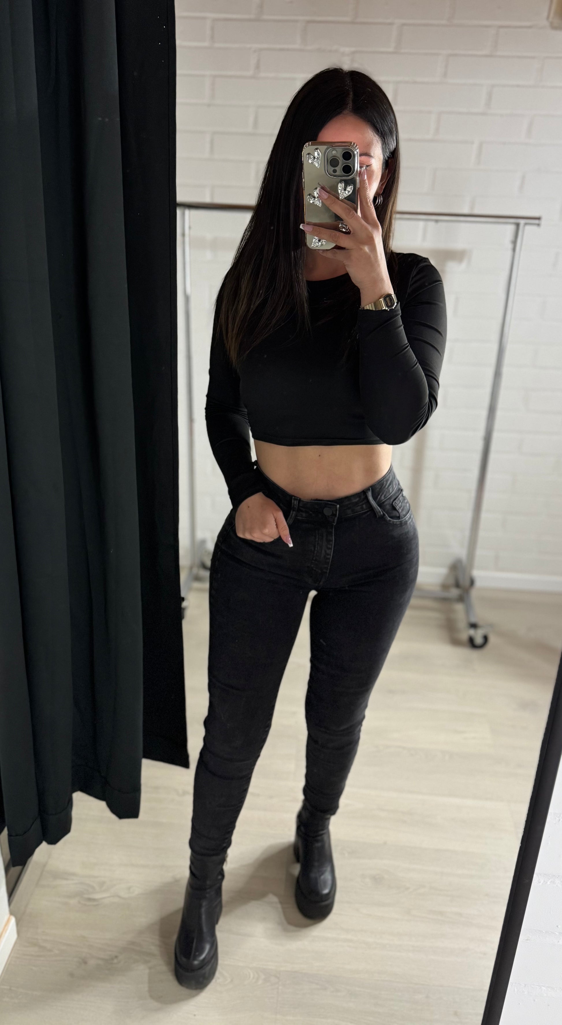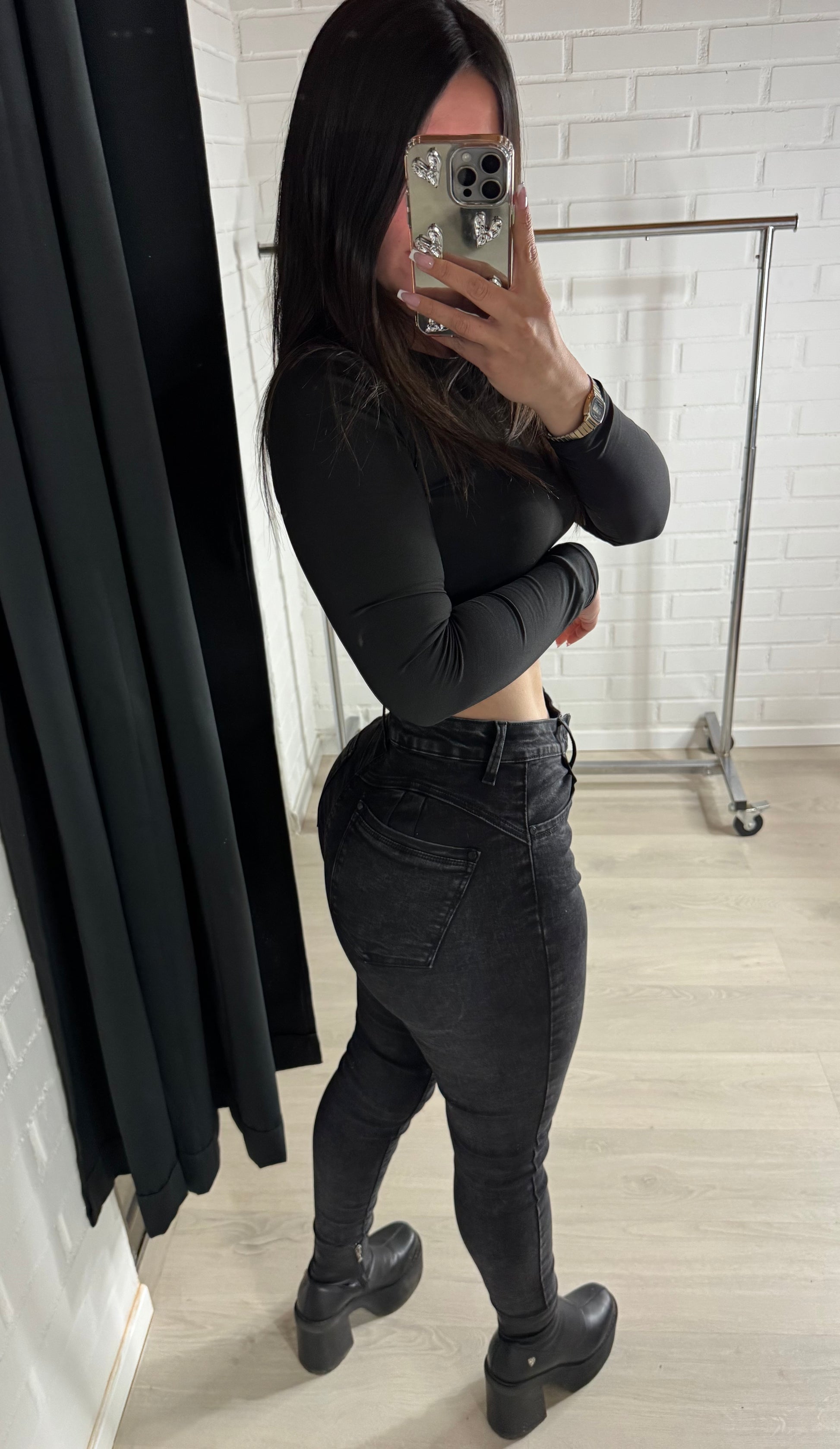 Nuestros jeans están diseñados para realzar tu figura con un calce perfecto, brindándote comodidad y estilo en cada movimiento. Gracias a su elasticidad premium, se adaptan a tu cuerpo sin perder la forma. El tiro alto define la cintura y estiliza tu silueta, creando un look moderno, versátil y lleno de actitud.