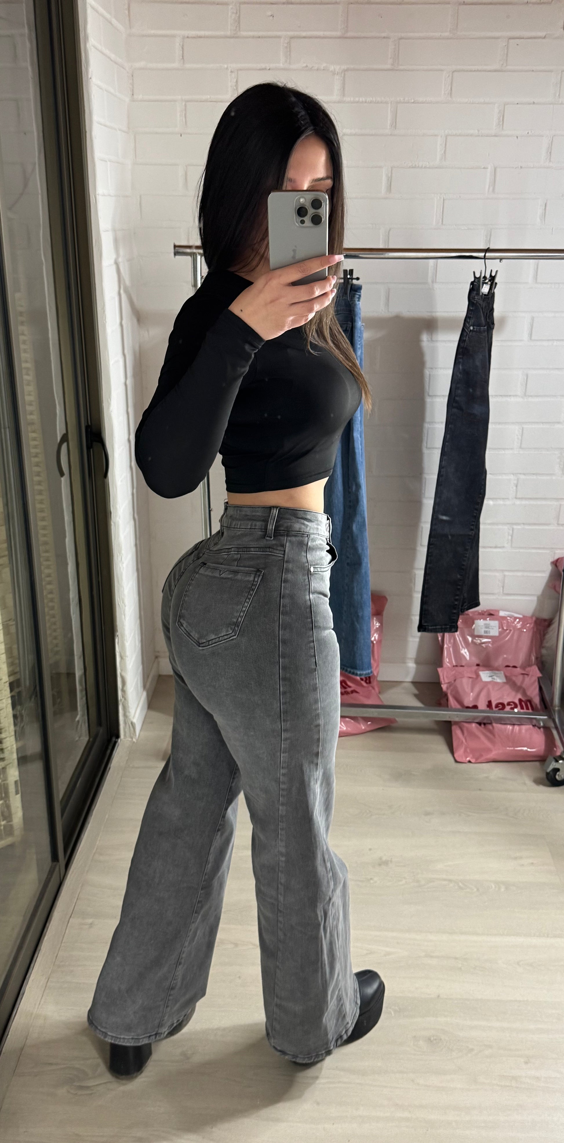 Nuestros jeans están diseñados para realzar tu figura con un calce perfecto, brindándote comodidad y estilo en cada movimiento. Gracias a su elasticidad premium, se adaptan a tu cuerpo sin perder la forma. El tiro alto define la cintura y estiliza tu silueta, creando un look moderno, versátil y lleno de actitud.